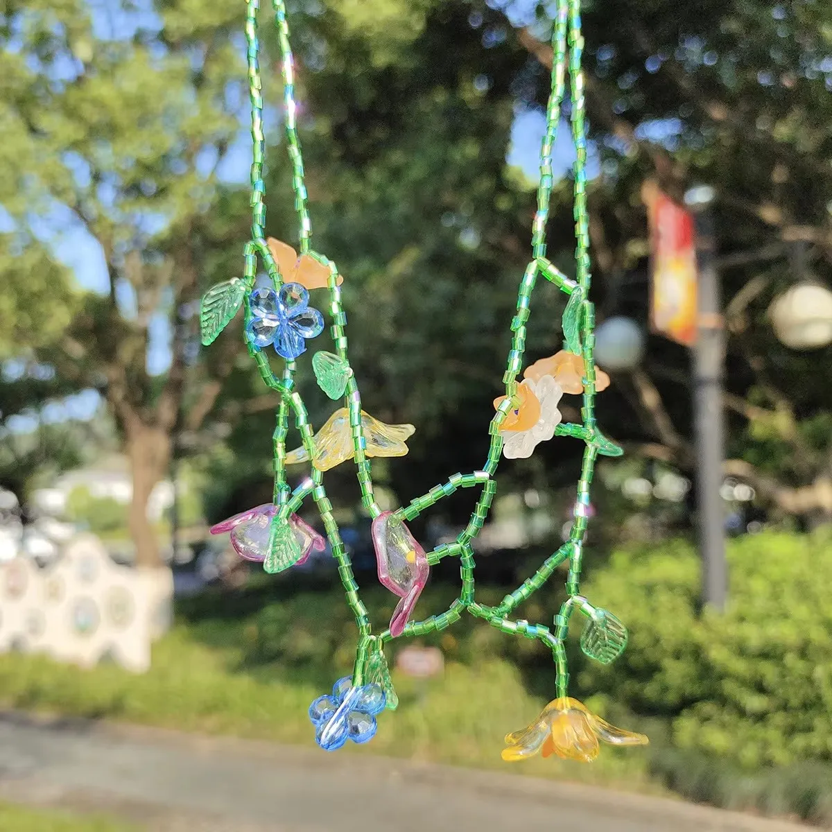 The Bohemian Colourful Beaded Plant Necklace is a playful yet elegant piece that captures the beauty of natural shapes with a modern twist. Featuring vivid beads arranged in plant-inspired patterns, this necklace adds a burst of colour and personality to any outfit.
