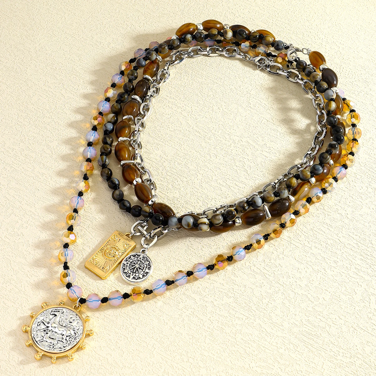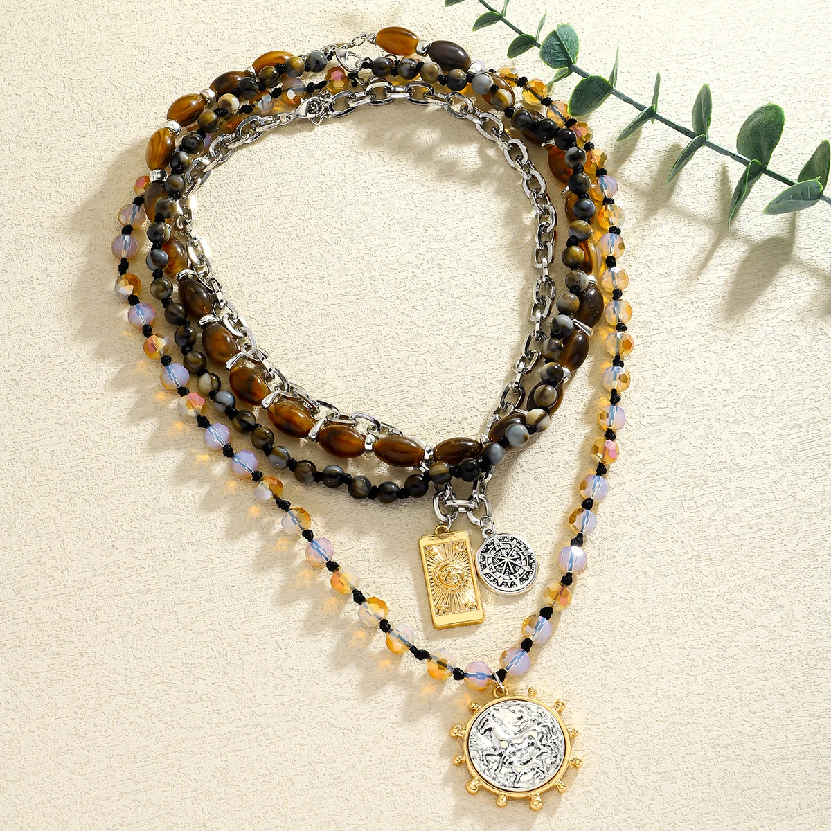 Trendy Multilayer Design: Combines beads and a coin pendant for a fashion-forward look.