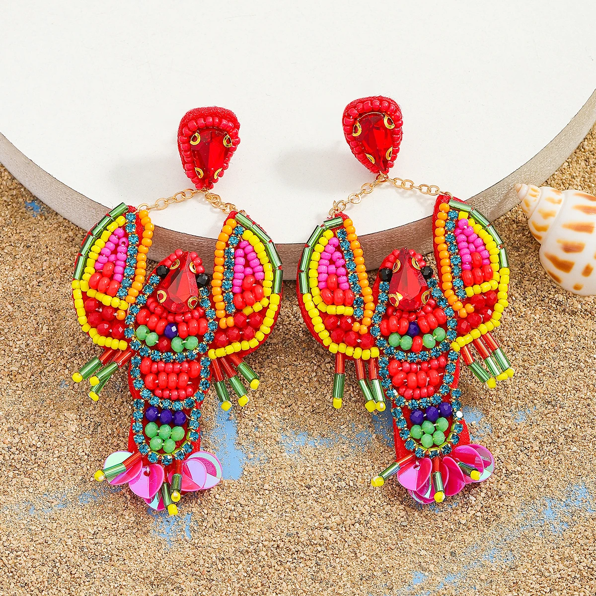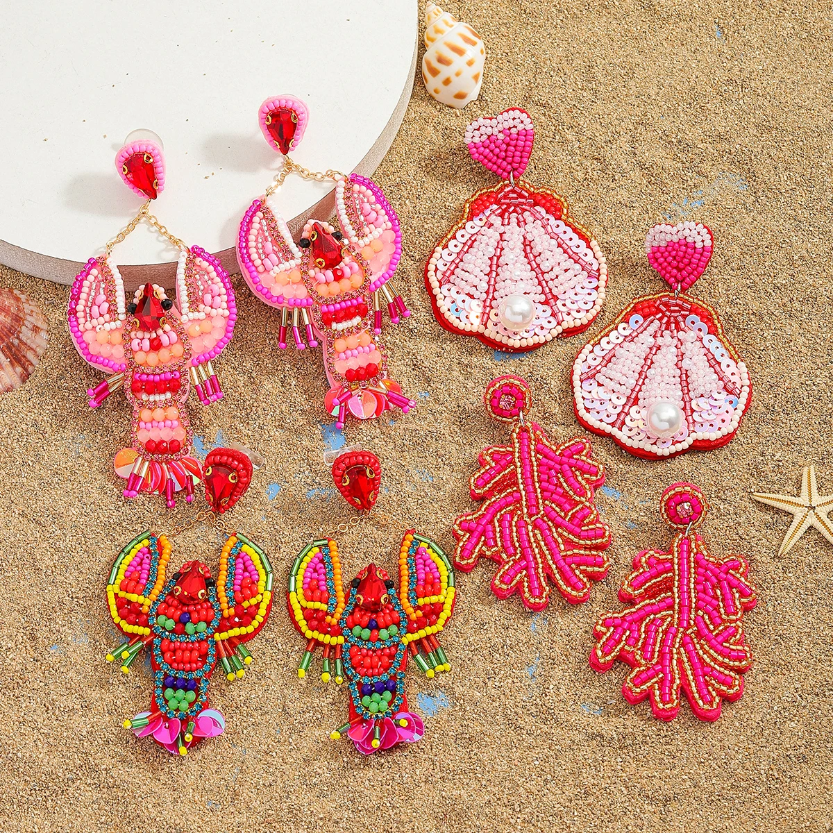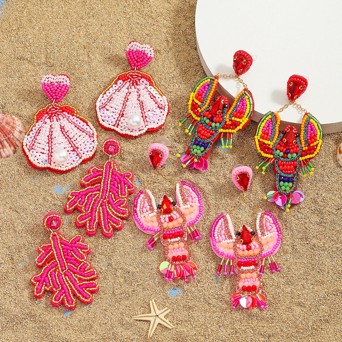 Embrace the playful spirit of the ocean with these Sea Charm Handmade Lobster & Coral Dangle Earrings. Featuring intricate beads, pearls, and sequins, each earring captures the essence of seaside charm. Perfect for summer vacations, beach parties, or adding a whimsical touch to your everyday look.