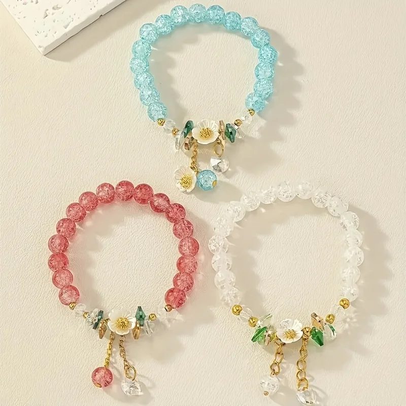 Boho Bloom – 3pcs Colorful Flower Beaded Bracelet Set