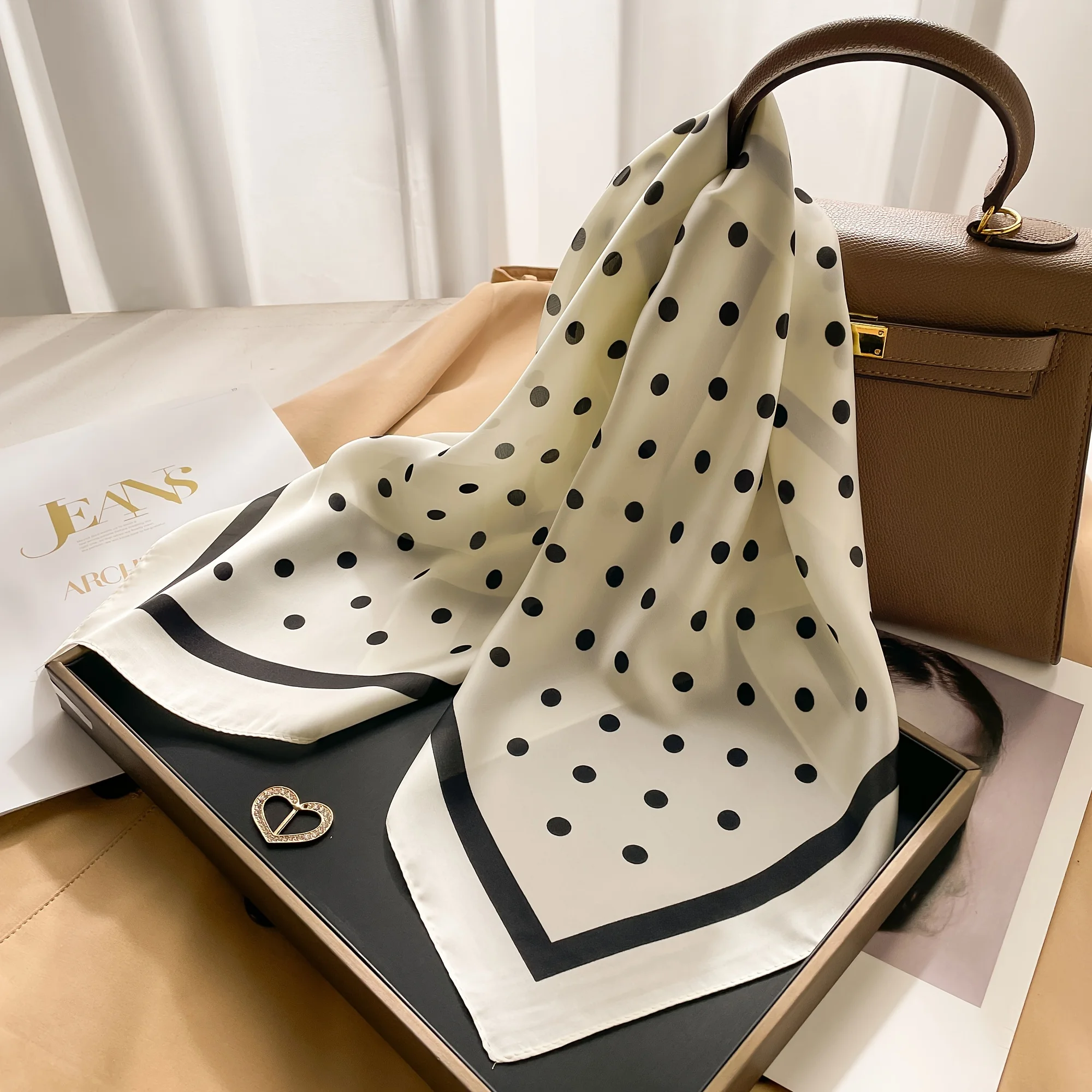 Chic Polka Dot: Women's Faux Silk Square Scarf