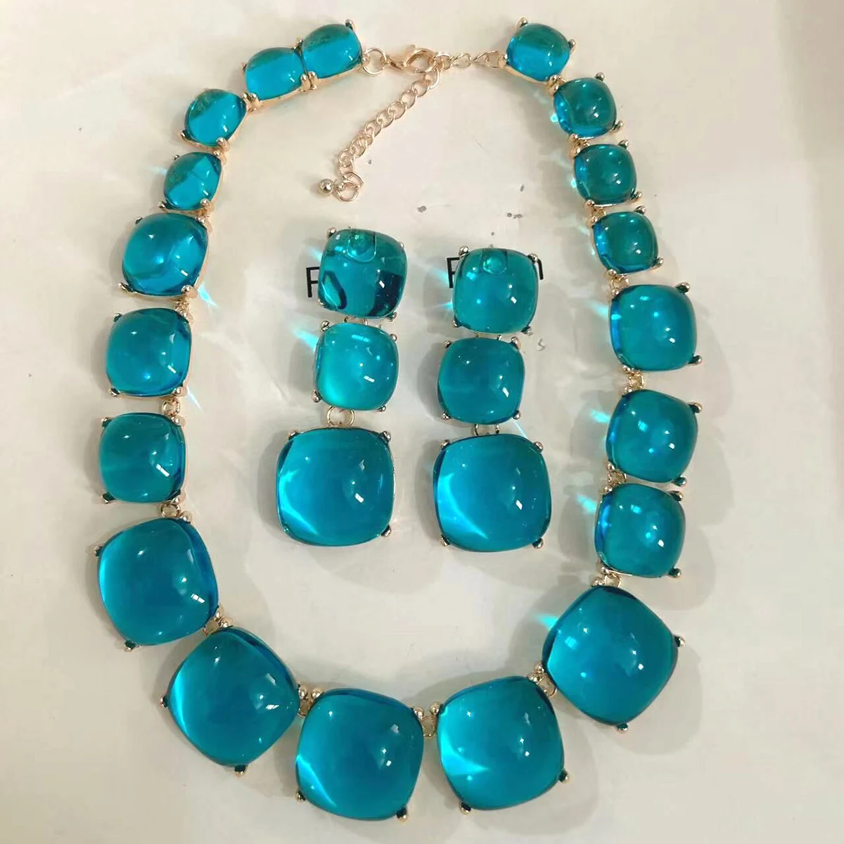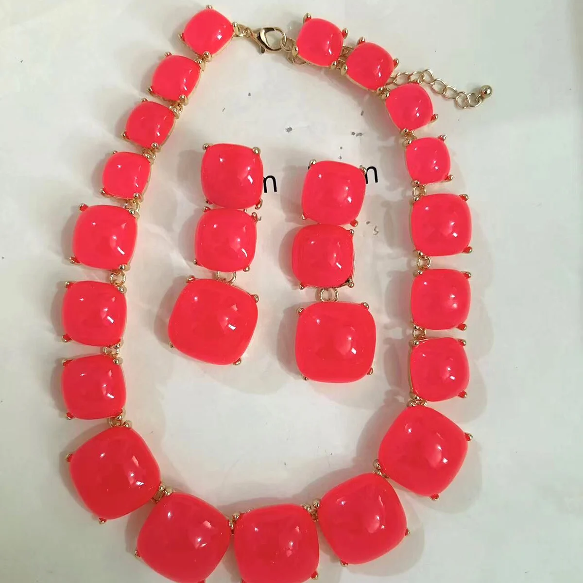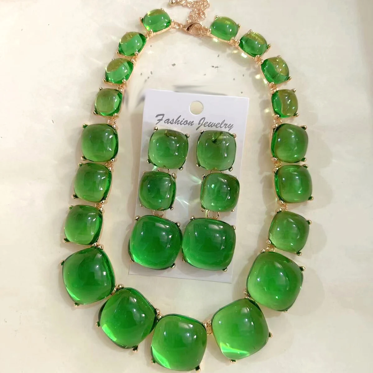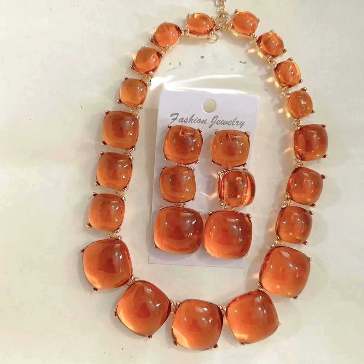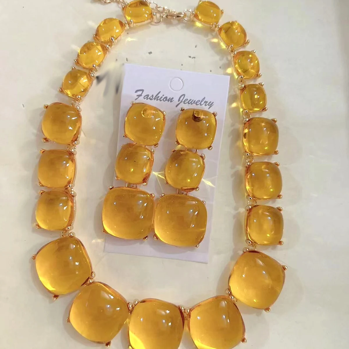 Geometric Resin Pendant Necklace & Earrings Set