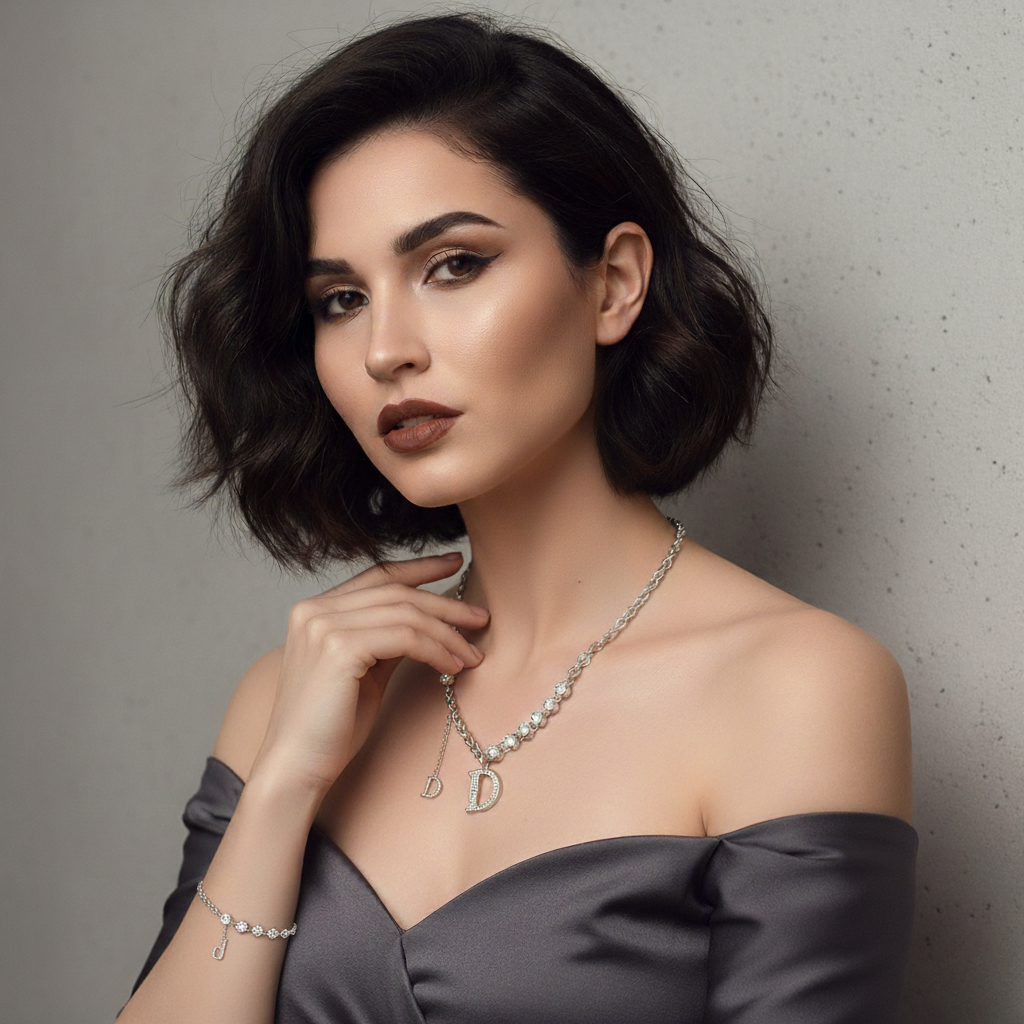 Celebrate your individuality with the Micro Zircon Letter D Pendant Bracelet, a delicate charm bracelet designed to add a personalised touch to your jewellery collection. Featuring a sparkling pave-set zircon letter charm, this bracelet effortlessly combines classic elegance with a modern, stylish appeal. Perfect for layering or wearing alone, it brings a subtle yet sophisticated statement to any outfit.