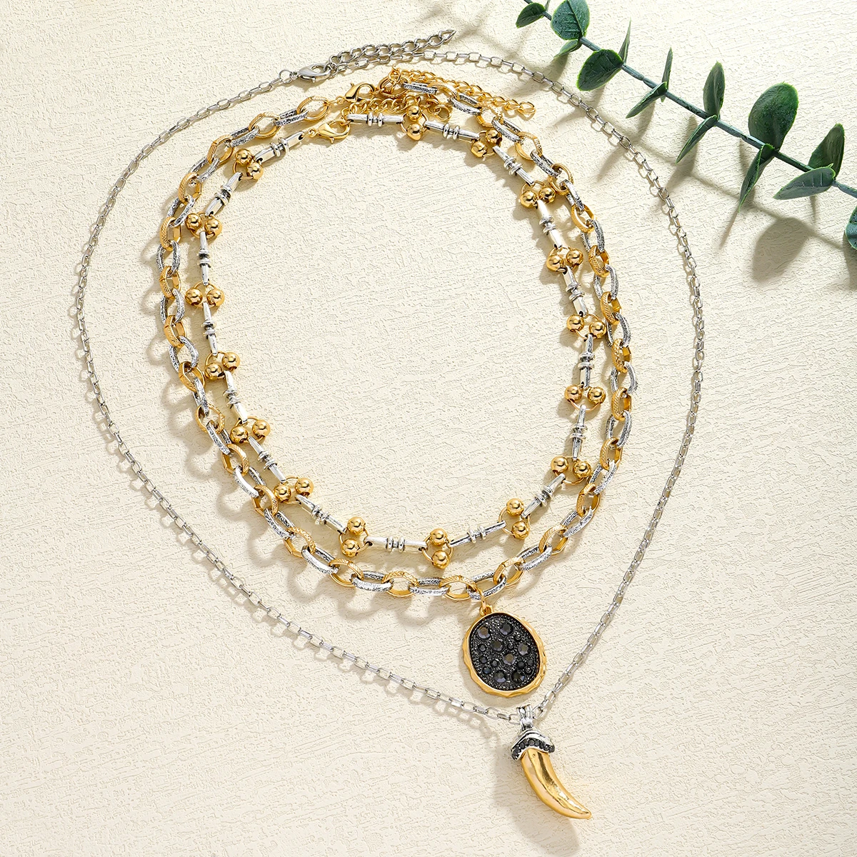 Mystic Trio – 3-Piece Vintage Horn Pendant Necklace Set, Bohemian Party Jewelry
