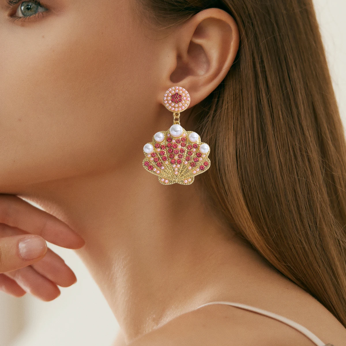 Make a statement with the Ocean Sparkle Pearl Earrings, featuring shimmering rhinestones crafted into elegant marine-inspired designs. Perfect for parties, special occasions, or adding a trendy, oceanic touch to your everyday style. These drop earrings effortlessly combine sophistication and playful charm.