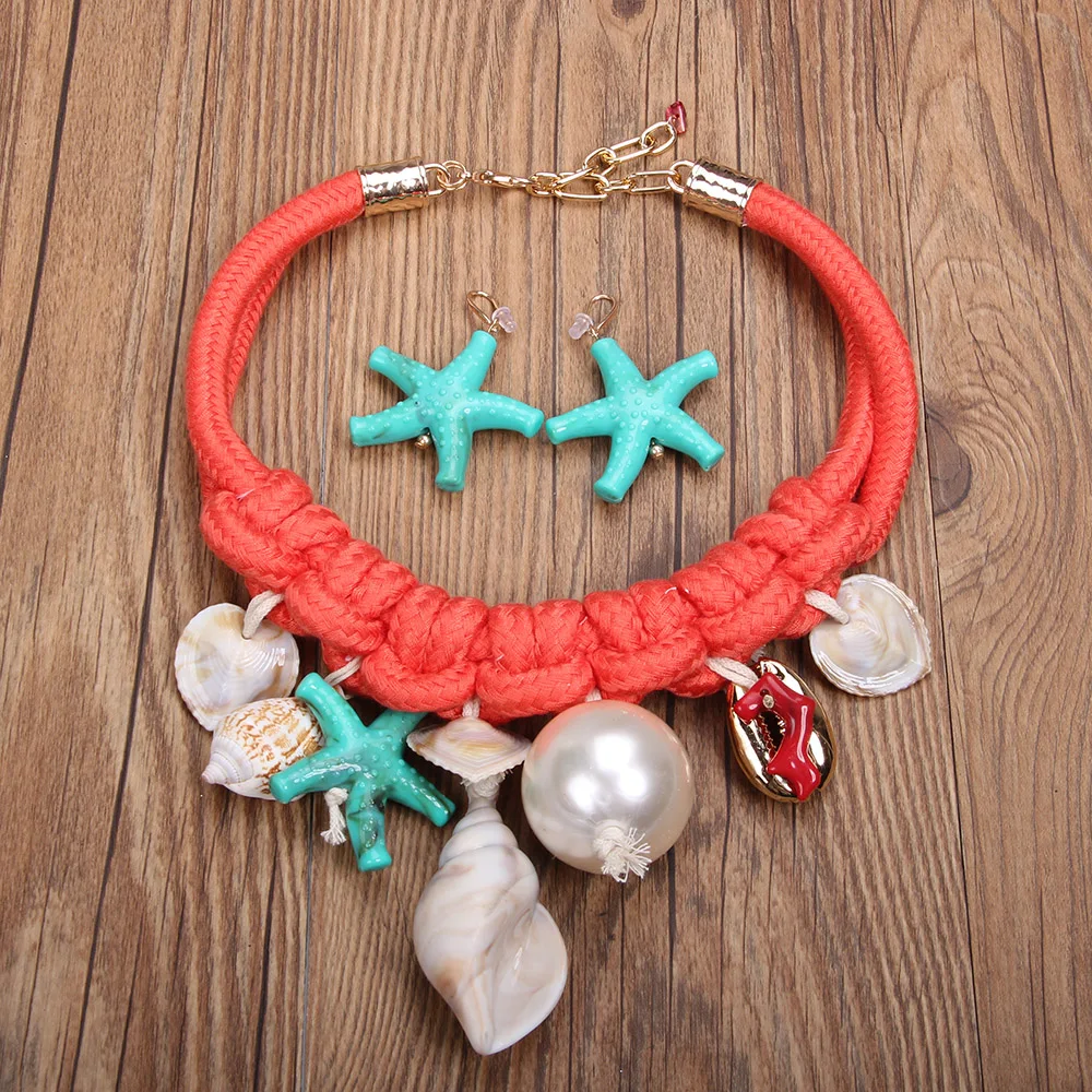Seaside Charm – Handmade Starfish & Shell Necklace and Earrings Set