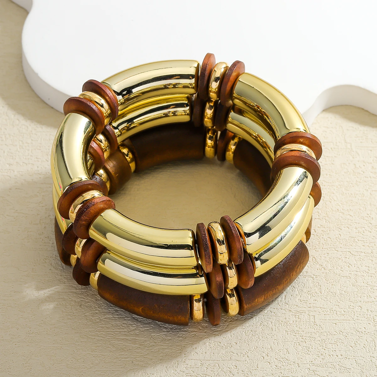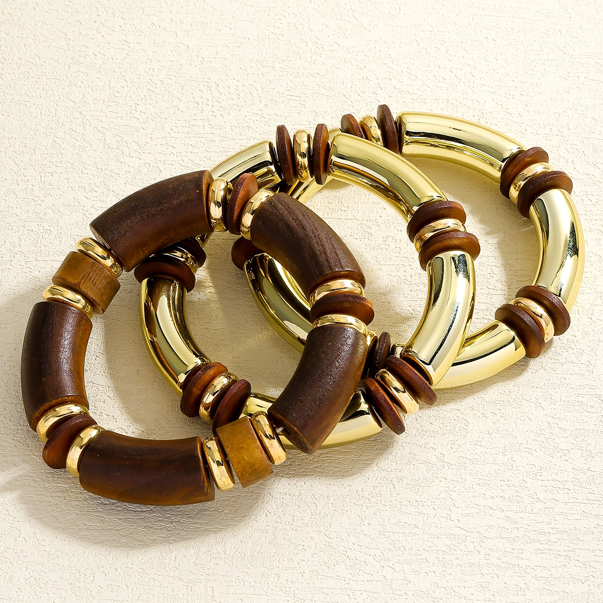 Triple Layer Wooden Charm Bracelet – Boho Chic Statement