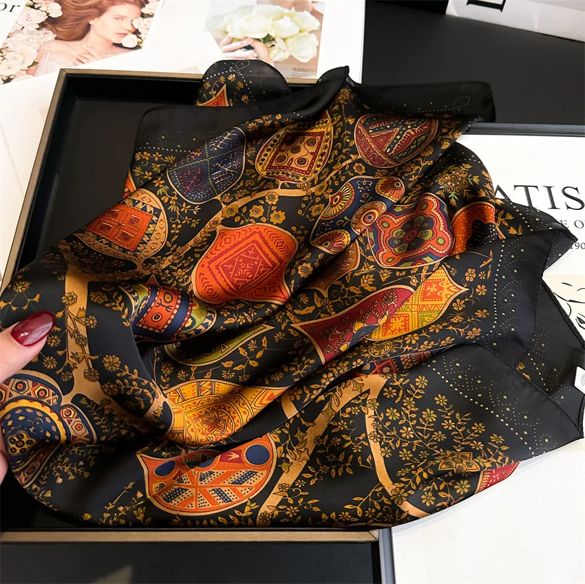 Vintage Charm: Luxury Square Scarf in Simulated Silk