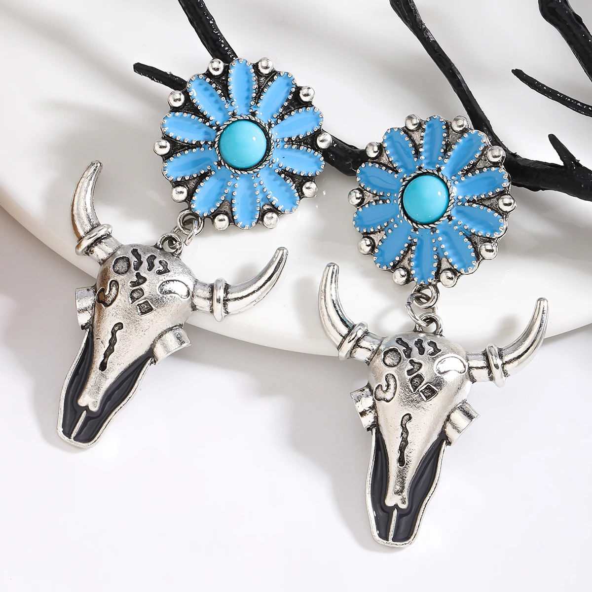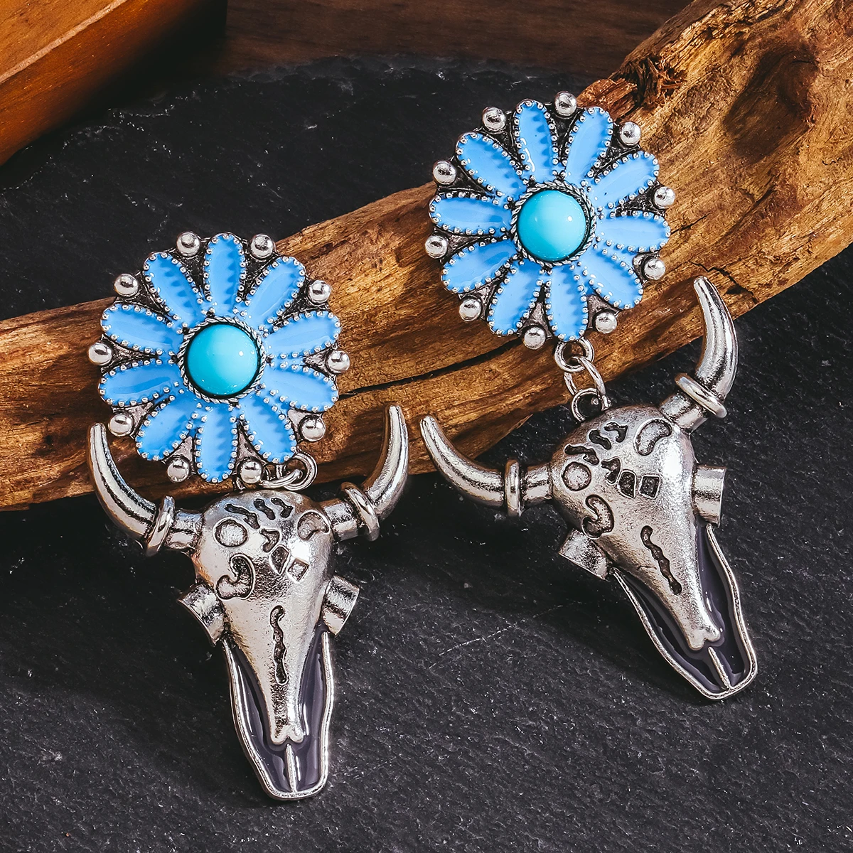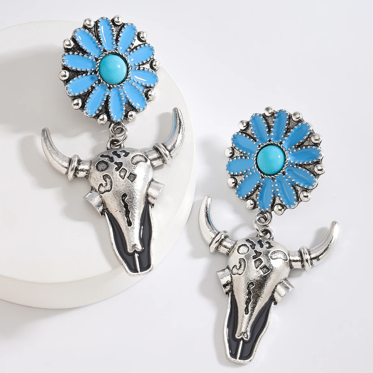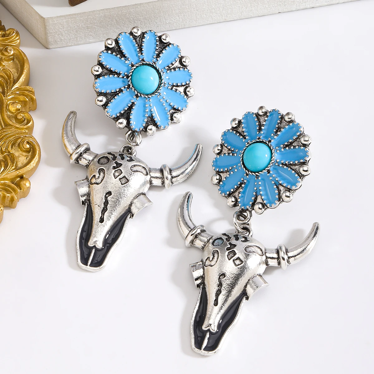 Make a bold statement with the Wild West Bling Earrings, where edgy punk style meets floral charm. These drop earrings feature a striking bull flower design crafted from durable zinc alloy, perfect for adding a rebellious yet fashionable touch to any outfit. Ideal for festivals, parties, or standing out in everyday wear, they bring attitude and style in one unique accessory.